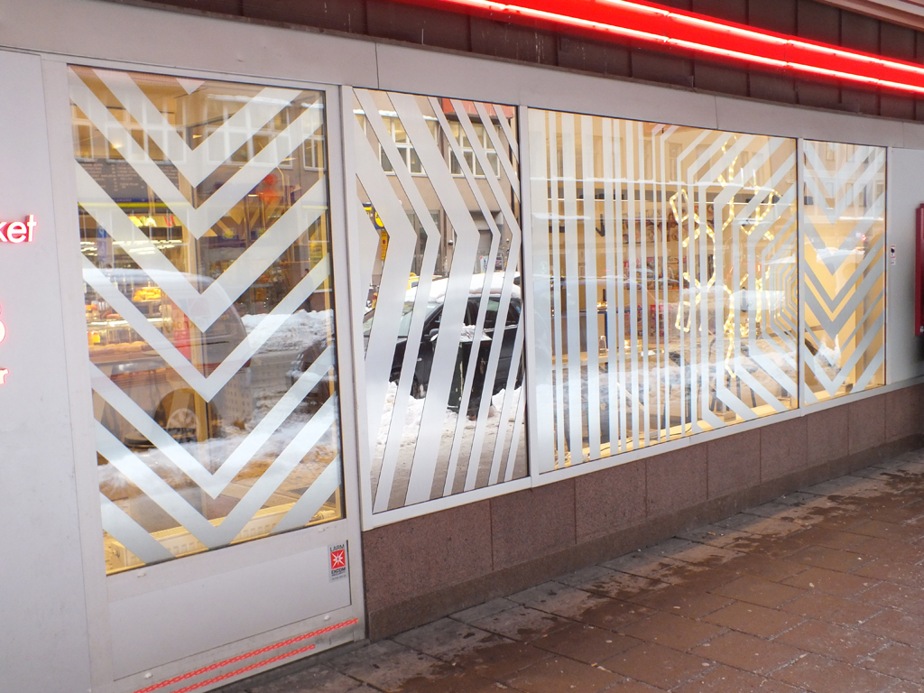 Utomhus på butiksfönster kan en kampanjdekor användas för att skapa uppmärksamhet under en bestämd tid, men dekor kan självklart också användas för permanenta installationer för att ge identitet och förstärka varumärkesidentitet.